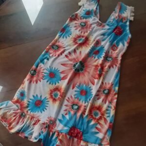 This exquisite vestido floreado verde y rojo features a captivating floral design that brings a vibrant touch to any wardrobe. The combination of green and red flowers creates a striking pattern, perfect for both casual outings and special occasions.